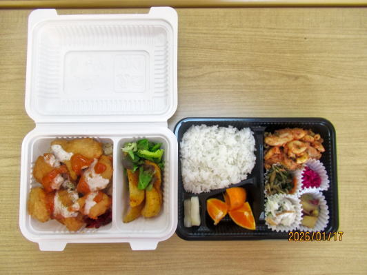 1月17日 お弁当(左側が大人用、右側が子ども用)